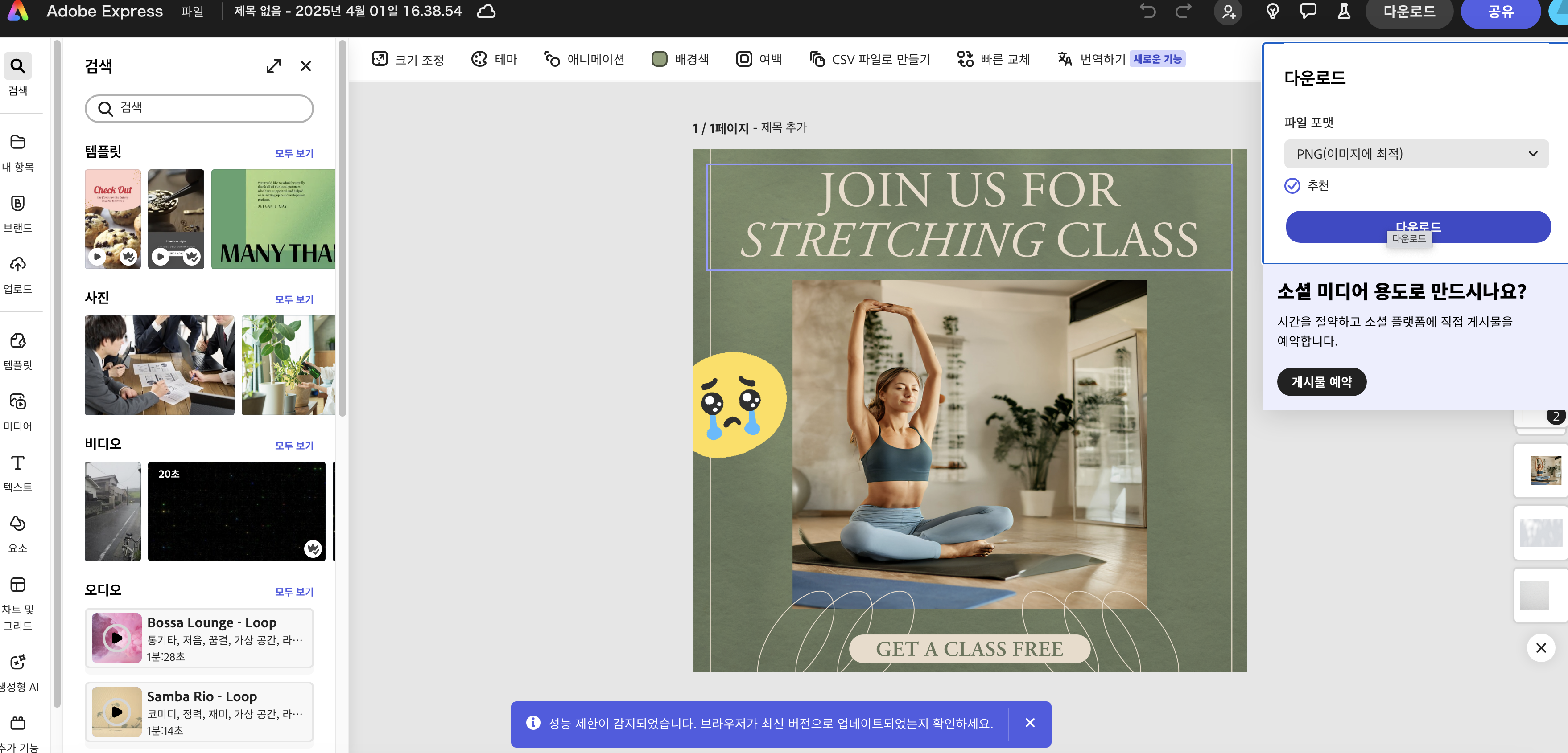 캔바(다양한 템플릿을 제공하는 그래픽 디자인 도구)와 비슷한 포맷이지만, 포토샵 등 다른 어도비 프로그램과 호환이 좋아서 어도비 유저라면 메리트가 있을 듯!