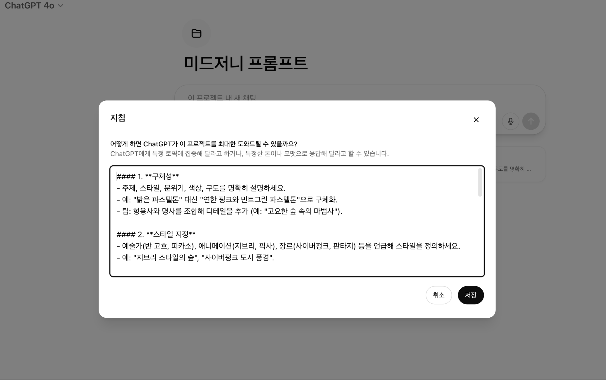 챗GPT 지침 활용으로 개인 맞춤형 설정 가능